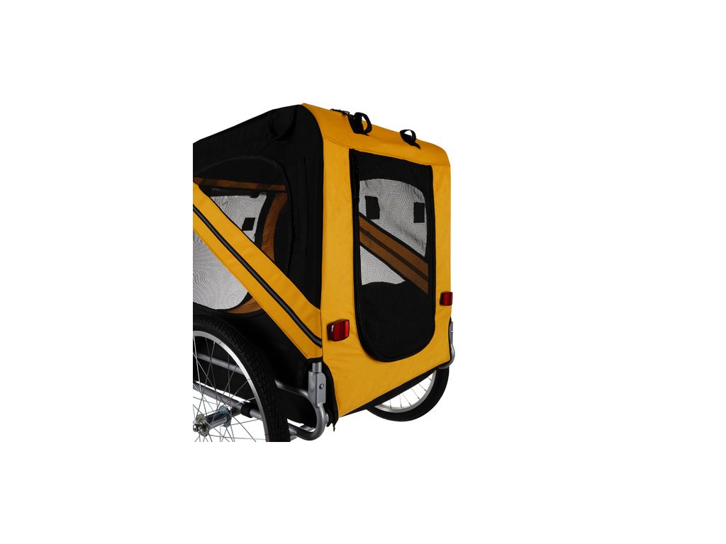 Vnitřní prostor o rozměrech 75 × 52 × 65 cm je ideální pro střední a velká plemena, jako je labrador nebo husky. Pohodlná kabina je vybavena bezpečnostními pásy, síťkami proti hmyzu a dostatečným větráním. Váš pes si cestu opravdu užije.